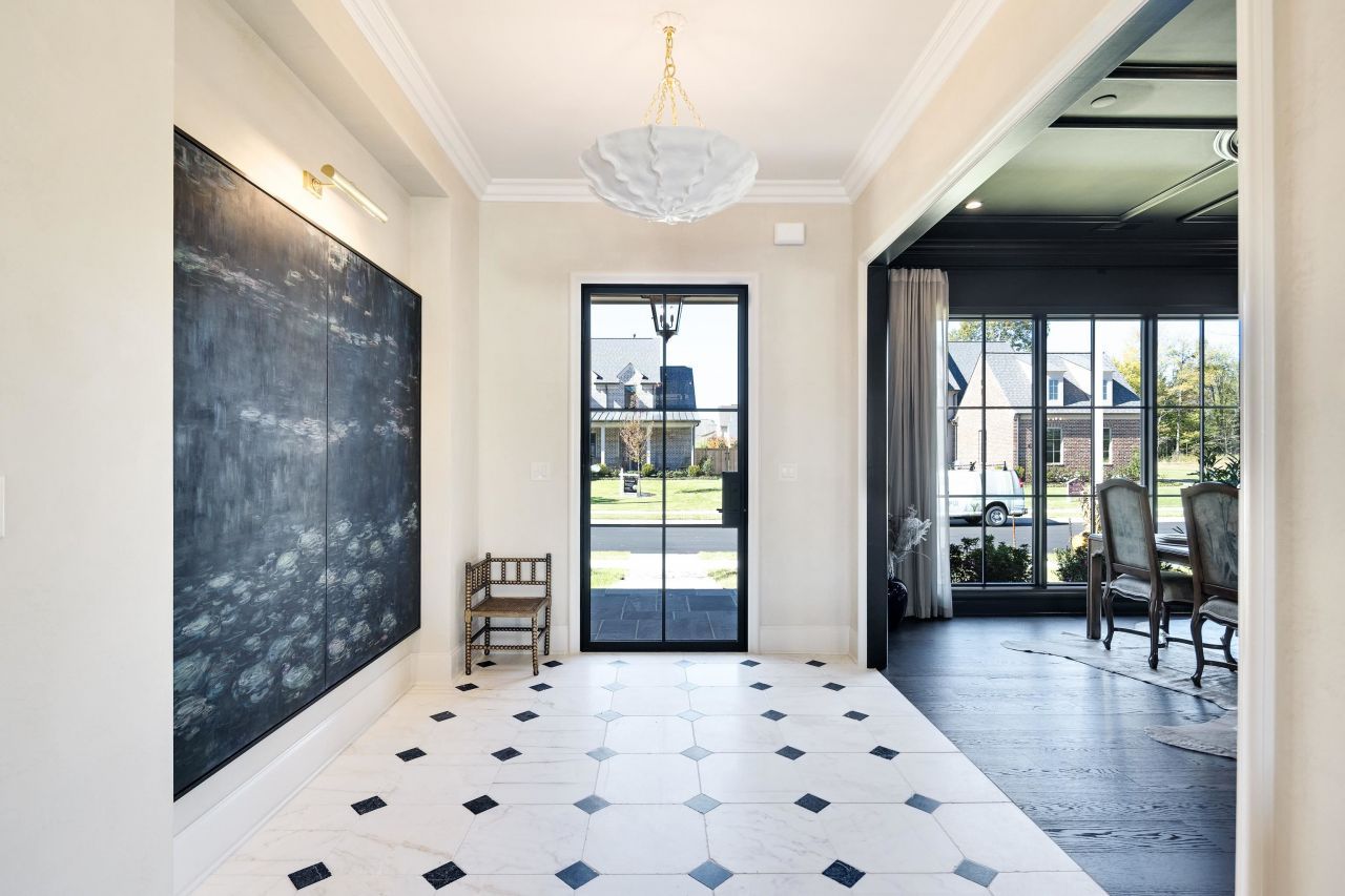 2025 Fall Vesta Home: The Augusta. Located in the Hidden Creek subdivision in Collierville. Built by Greg Bridgers, Southern Serenity Homes, the St. Jude Dream Home Builder of the Mid-South. Designed by Galey Grimes Interiors. The main level offers dining, living, a kitchen with breakfast room and scullery, office, guest suite with full bath, and laundry with a dog bath. Natural light fills the great room accented by timber beams and a stone fireplace, while the kitchen showcases custom cabinetry and designer finishes. The vaulted primary suite creates a spa-like retreat. Upstairs features two bedrooms, two baths, and two bonus/flex rooms, the larger perfectly sized for a golf simulator. Outdoor living impresses with a covered terrace, outdoor kitchen, fireplace, and pool, plus a convenient half bath for poolside use. Crafted with signature Southern Serenity quality, The Augusta is timeless, elegant, and designed to live beautifully.
